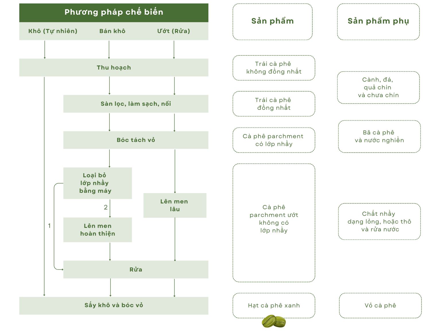 Các giai đoạn của quá trình chế biến cà phê ướt và khô